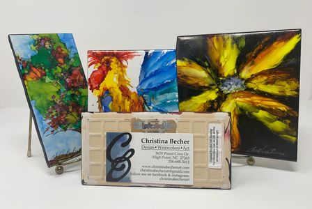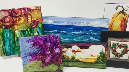 My Alcohol Ink Paintings flow similarly to how I paint in watercolors, except the inks themselves stay on top of the surfaces, never being absorbed and thus retaining all of their vibrant colors. There are various sizes/types of paintings available in my Store where shipping costs are included in the price noted. Examples of my art are shown below.